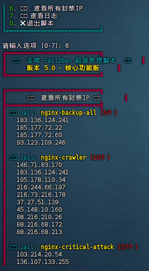 <p>本工具的开发正是为了解决这些问题,让宝塔面板用户能够更轻松地管理 Fail2ban,无需记忆复杂的命令,通过简单的交互式菜单即可完成所有操作。</p>